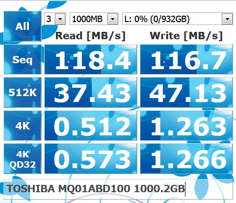 ドライブの性格上、4k等の細かいファイルのR/Wは不得手のようですが、シーケンシャルR/Wは2.5インチHDDとしては十分過ぎるほど優秀です。