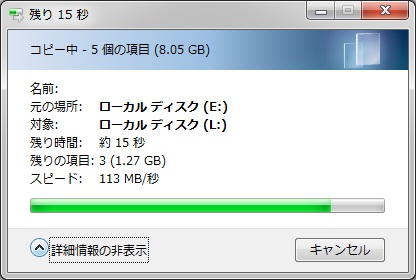 書き込み開始から30%くらいまでは、160MB/秒とかヘンな数字も確認しているので、目安でしかありませんが、データ用HDDとしては十分な速度と言えます。