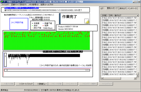 前半部分に読み出せないセクタが点在しているのがわかります。相当ダメージを受けていた事は想像に難しくありませんね。