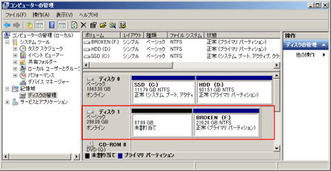 ちなみに壊れた HDD で検出されたエラーセクタですが、LBA の 188343459番目より後は発生していないというレポートでしたので、前半 90GB をパーティショニングして隔離、後半の約 200GB をいつでも破棄できる一時ストレージとして使おうかなーと考えています。もったいないのでヽ(゚∀゚)ノ