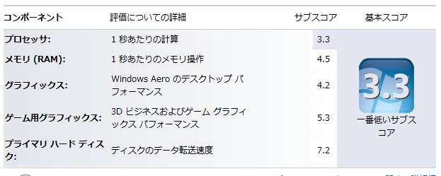 やっぱりCPUのスコアが3.3と一番低いので、これがボトルネックになっているんでしょうね。