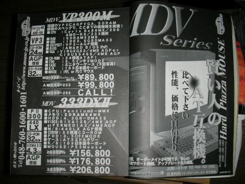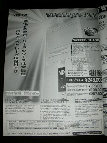 今となっては格安で19万円とパソコンとか、PenⅡ333MHzで超速とか泣けてくる内容です(^^;