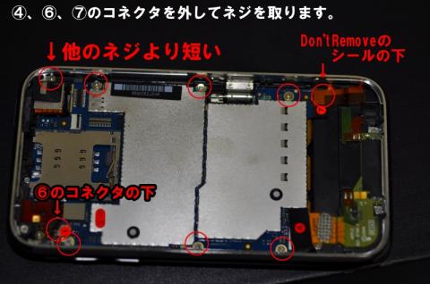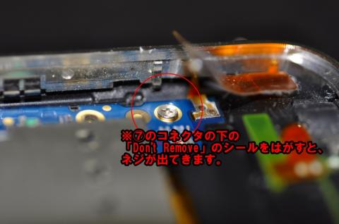 ※(5)のコネクタ以外を外します。(7)の下にお約束の「Don't Remove」のシールが貼ってありますが、無視して剥がします。