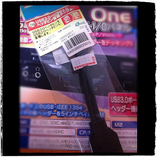 GA-Z77MX-D3HはUSB3.0をオンボードで2コネクター持っていますが、USB2.0 形状のコネクターを使用しています、フロントにUSB3.0を出すには変換ケーブルが必要になります・・・