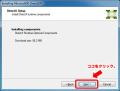 アプリケーションのダウンロードが終了すると、「ダウンロードが完了しました。ダウンロードしたファイルを実行しますか?」と聞かれるので、「Yes」をクリックし、インストーラーを起動します。セットアップウィザードが起動したら、「次へ」をクリック、使用許諾契約書の同意を求められますので、「同意する」にチェックを入れ、「次へ」をクリックします。インストール先の指定は、デフォルトで指定されているフォルダで良いと思いますので、そのまま「次へ」をクリックし、プログラムアイコンの作成場所もデフォルトのまま、「次へ」をクリック。インストールの準備が完了したら、「インストール」クリックします。