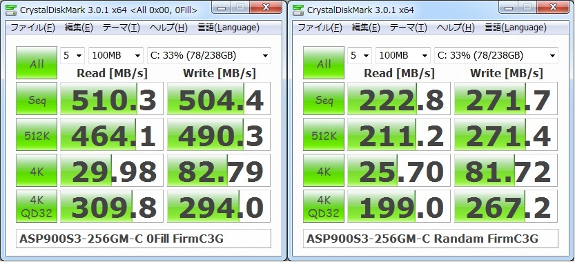 まぁSandForce SF-2281コントローラーの特性といえばそれまでなのですが。