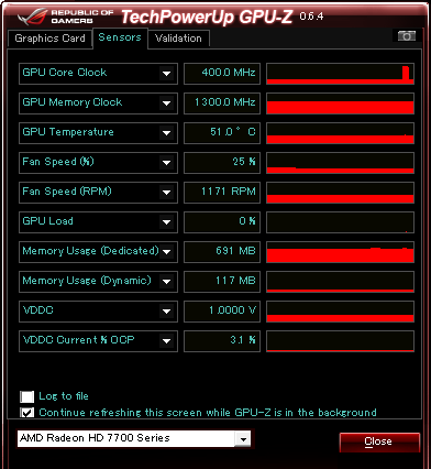 51℃…室温33℃ですから、+18。ファンは25%回転で1171rpmですから、うるさくないです。