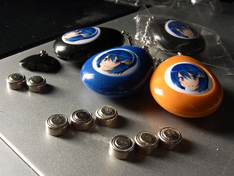 ところでこのオークションで入手した3点、未使用品との事で実際開封跡も無く絶縁シールもそのまま。しかし何故か音が鳴らない。せっかく入手したのに飾りかよと焦ったのだが、ご丁寧に3個とも電池切れ。先述のパンドラ箱から出てきたものも電池切れと書いている人が多かったので、どうもコレに使われたLR44は不良品率が異常に高かったのだろうか。微かに液漏れのような痕がある電池もあるし。