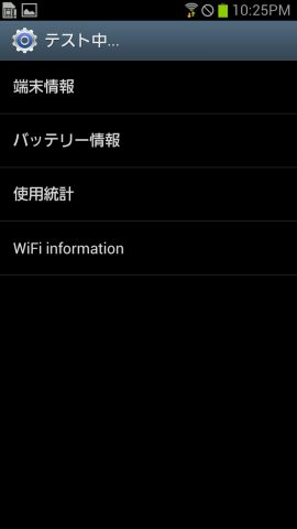 - テスト中...画面で、[ 端末情報 ]をクリック