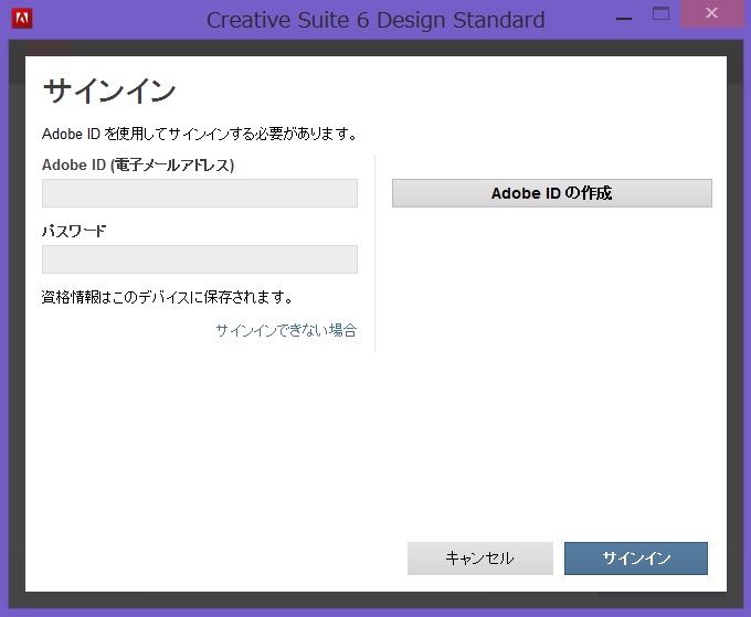 Adobe IDを入力し、パスワード入力しサインインします。