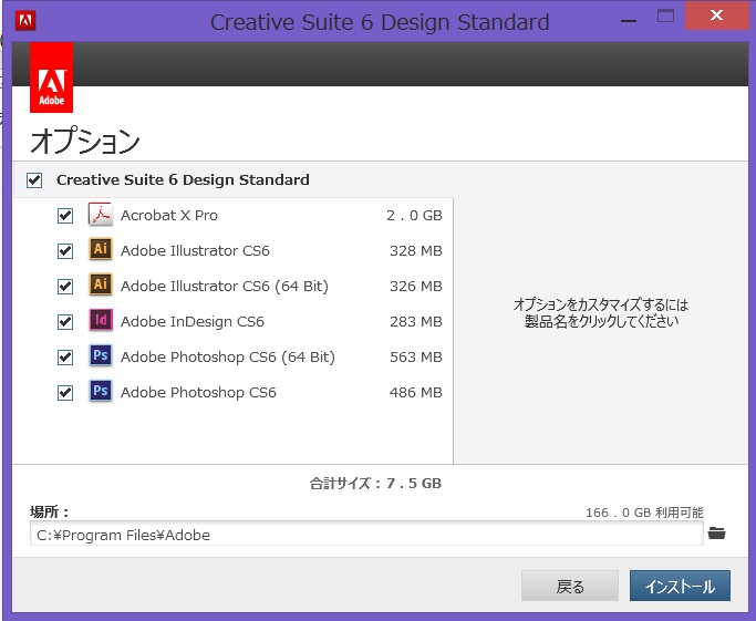 まずは、Adobe Creative Suite 6 Design Standardをインストールしていきますね。