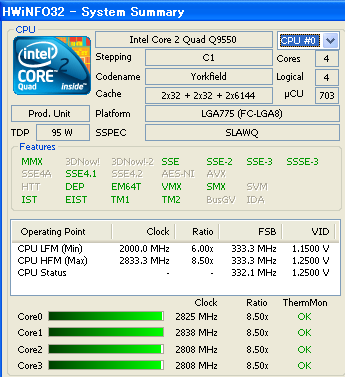 HWiNFO64で監視して、サーマルセンサーが反応してクロックが絞られてなければいいんですけどね。