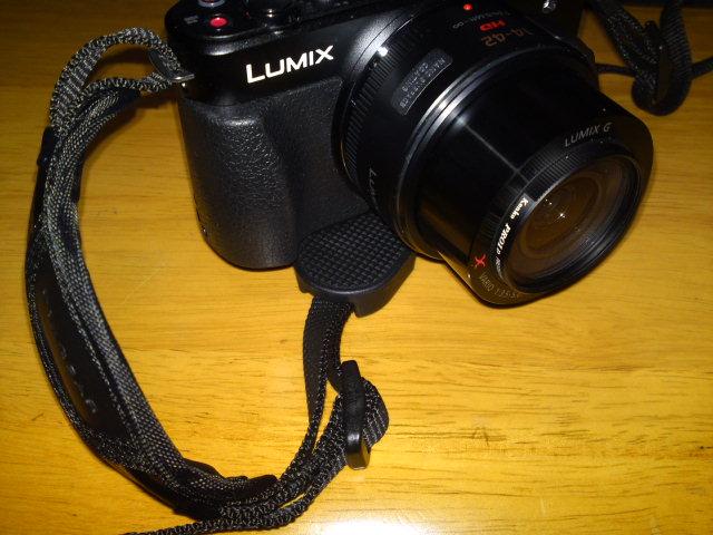 GX1のネックストラップが本体の両側にあり、シャッターが押しにくいのと、