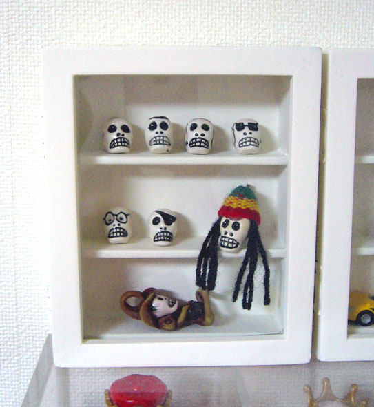 アテもなく買ってしまった100均の棚、今は指先ほどの大きさのスカルを