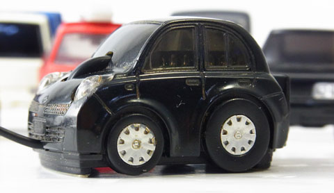 どう見てもチョロQ。サイズもカタチもチョロQ。日産のロングセラーコンパクトカー、K12型マーチをモデルにしたチョロQ以外の何者でもないこのシルエット。