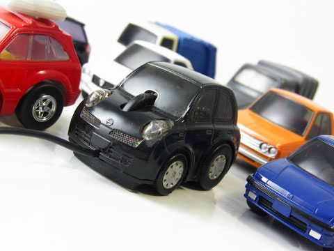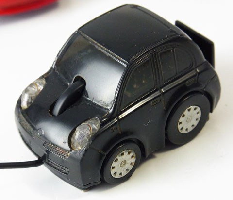 なんと数年前にノート&持ち主共々車にはねられてしまった。その時の衝撃でVAIOノートは全体が歪み(でも生きてた)、このチョロQマウスはUSBケーブルが断線してしまったのだ。ちなみに本人もそれなりの怪我をしたがチョロQマウスのほうがショックだった。出先でなかなかウケるアイテムだっただけに惜しい。