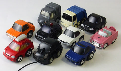 まあがんばれば適当なUSBケーブルを本体基盤に半田付けして、復活させる事も不可能ではないかもしれない。しかし復活させてもマウスが有り余っている今では、結局置物化は確実なので踏ん切りがつかず、結局ショーケースの中で他のチョロQにまぎれて鎮座している。