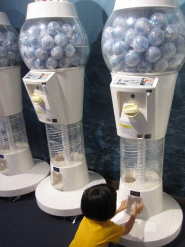 ゆったりと見ることができましたよ。ガチャはイルカスタジアムの丁度裏ぐらいにありました。限定ものなので、1回は引いておこう・・・とやってみると、当たったのは「ハモ」