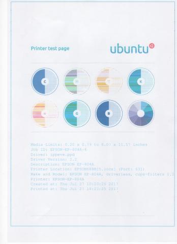 EPSON EP-804Aのテスト印刷の結果です。OSはUbuntu 17.04。