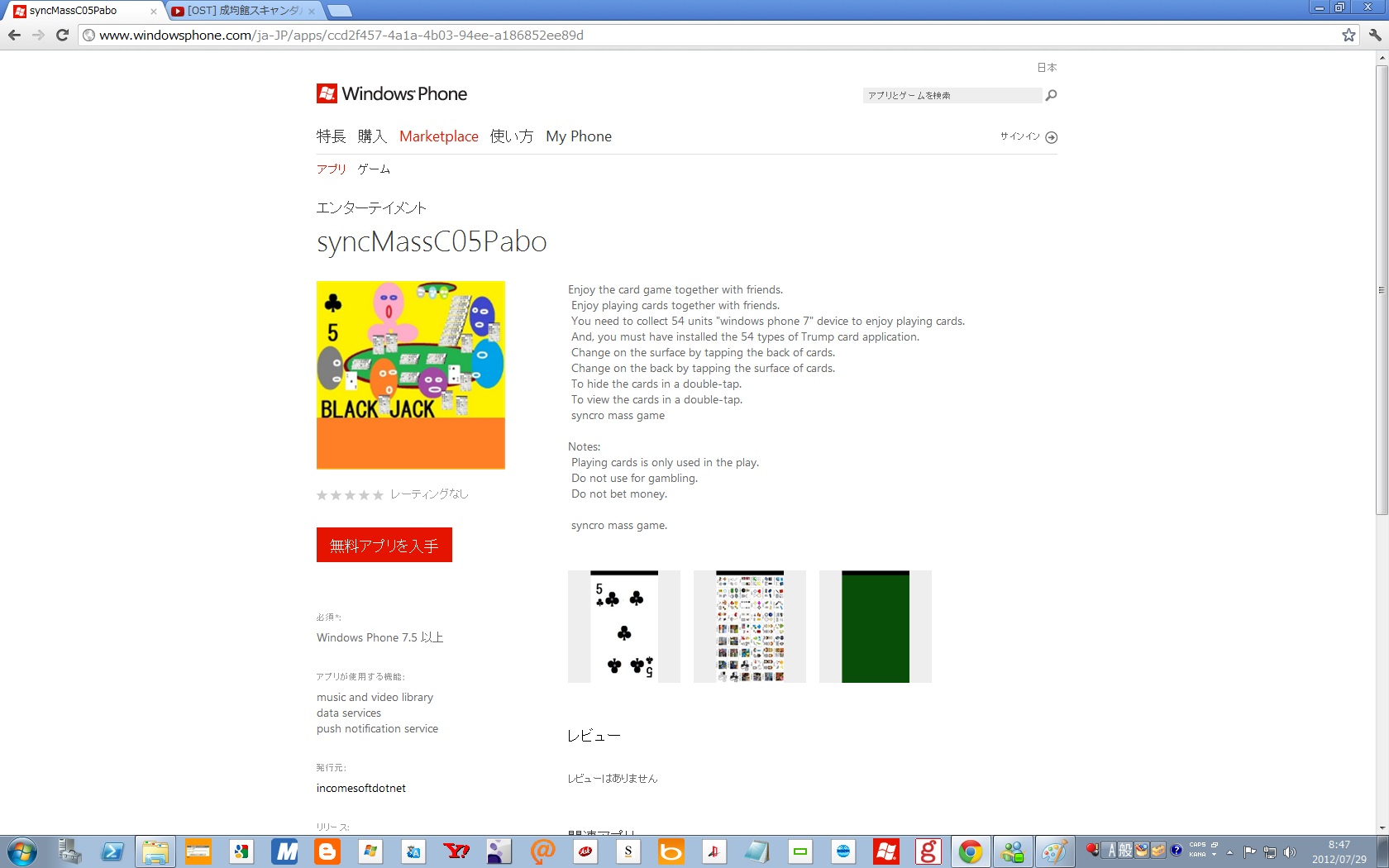 ((注) 今回ディープリンクを表示できるようにしましたがプライベート公開です。2012/8/4(土)迄の期間限定です。そのため、おばかアプリ選手権 2012 夏コンテスト審査関係者様で、かつ有効なWindows Live ID でテスター登録されたものを利用されている方のみダウンロードが可能です。それ以外の方は審査通過後、各アプリ 1個 115円(日本円の場合の価格)の有料WP7アプリとして世界 44か国のApp Hubから公開ダウンロードできるようになるまでお待ちください。お楽しみに!いいことありますように! だだ、私はSIMなしのWP7実機を1台のみ所有していますが、プライベート公開ではダウンロードが一度も成功していないため、ダウンロード可能者の皆様にご迷惑をかける場合があります。あらかじめご了承おねがいいたします。)