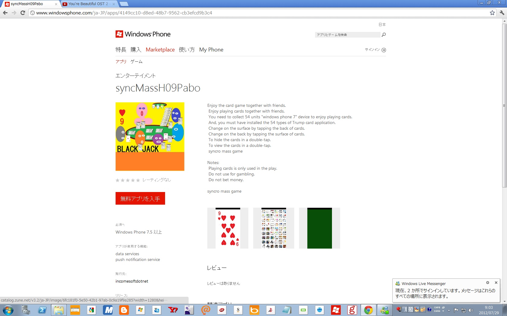 ((注) 今回ディープリンクを表示できるようにしましたがプライベート公開です。2012/8/4(土)迄の期間限定です。そのため、おばかアプリ選手権 2012 夏コンテスト審査関係者様で、かつ有効なWindows Live ID でテスター登録されたものを利用されている方のみダウンロードが可能です。それ以外の方は審査通過後、各アプリ 1個 90円(日本円の場合の価格)の有料WP7アプリとして世界 44か国のApp Hubから公開ダウンロードできるようになるまでお待ちください。お楽しみに!いいことありますように! だだ、私はSIMなしのWP7実機を1台のみ所有していますが、プライベート公開ではダウンロードが一度も成功していないため、ダウンロード可能者の皆様にご迷惑をかける場合があります。あらかじめご了承おねがいいたします。)