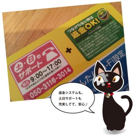 土日の休みにもサポートって、太っ腹です。(簡単接続すぎて誰も電話してこなかったりして。。)