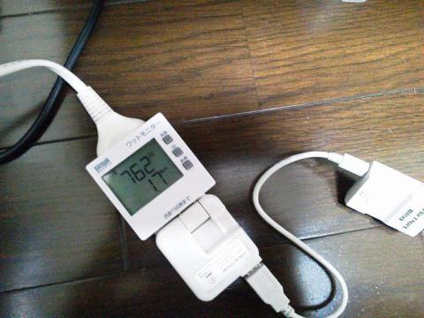 わずか1.7W(たまに2.0Wまで上昇するがすぐに落ちる)です。USBチャージャーが0.3W消費してるのでわずか1.4Wということでしょうか・・・