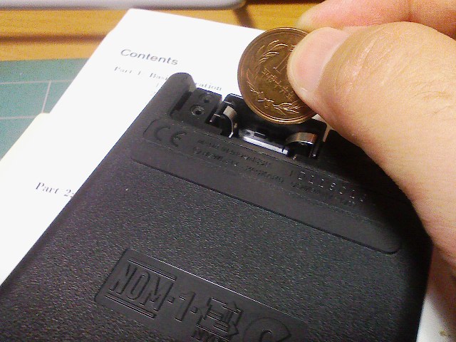 マニュアルを読むと、電池の端子間をコインでショートせよ、と書いてあります。
