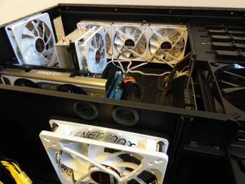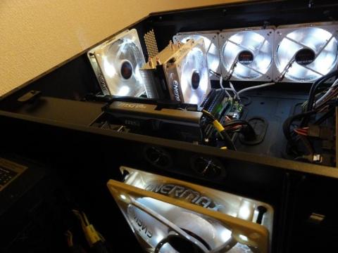 2台をさっそく取り付け。ケース背面と、写真下の電源横の2箇所を換装。