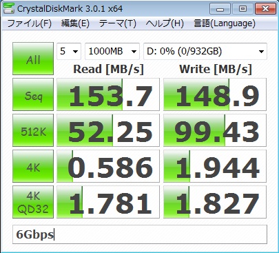 ベンチマークは、6Gbpsと3Gbpsで計測したが、インターフェイスでの違いはありませんでした