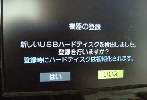 新しいUSBハードディスクの登録を行います。もちろん初期化されます。