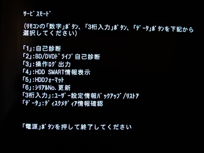裏コマンドにより、下記「サービスモード」画面が表示されます。