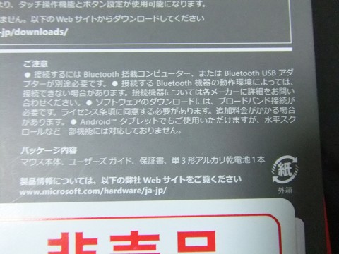 対応OSはキーボードと同じくWindows7/8/RT MacOS X 10.6.x~10.7.xとなっていました。