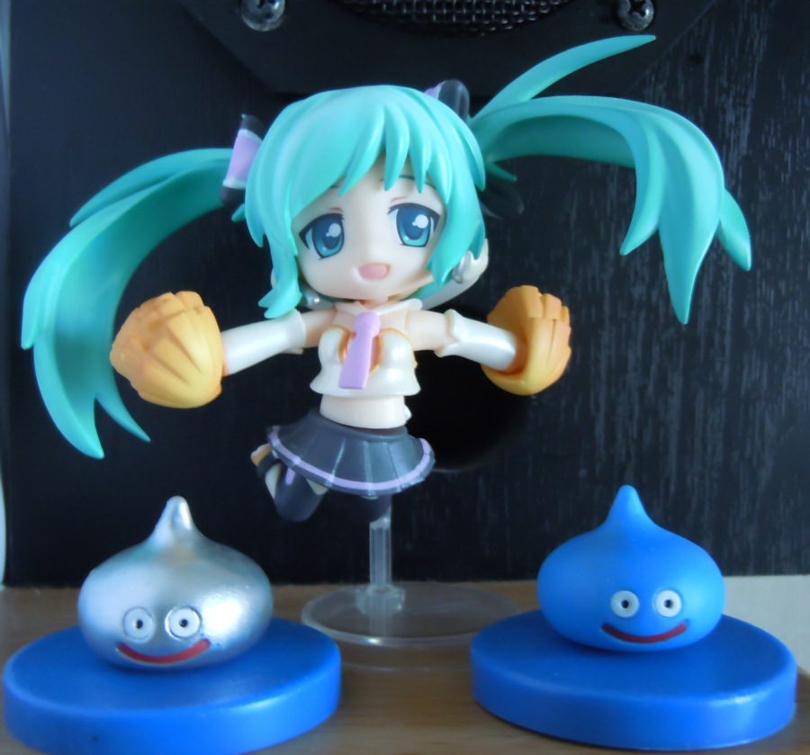 ミクさんの応援で、スライムが悪代官を融解してしまうのです!