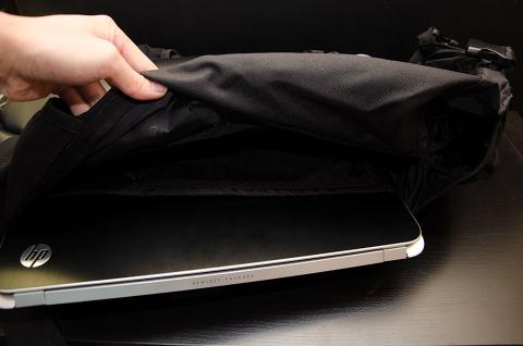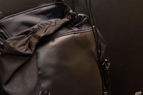中へのアクセスは、雨よけ用のフラップを外して、巾着を広げればOK。