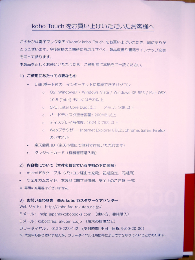 コメントで書いていますが、振るとカタカタ音がなってたので、8/9にkoboのカスタマケアへの連絡→楽天24のサポート連絡で新品が発送されることになりました。