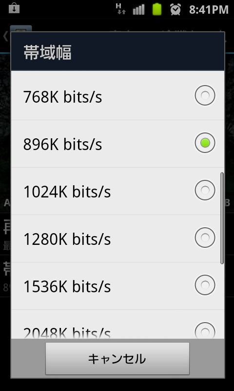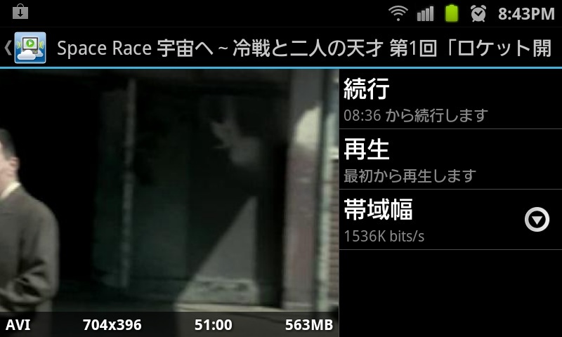 このプレイヤー、標準アプリにちょいと手が加わった程度の代物だが、再生出来る形式も多いし、何より回線状況に応じて転送ビットレートを再生途中でも簡単に変更可なのは、ものすごくありがたい。