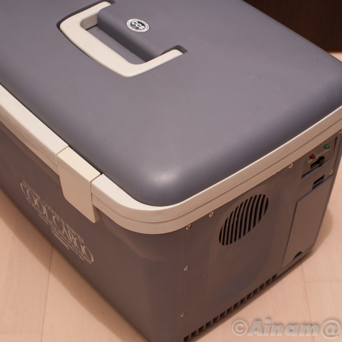 このポータブル電子冷温ボックスは、自動車のシガープラグから電源を取る事により、冷やしたり温めたり出来ます。