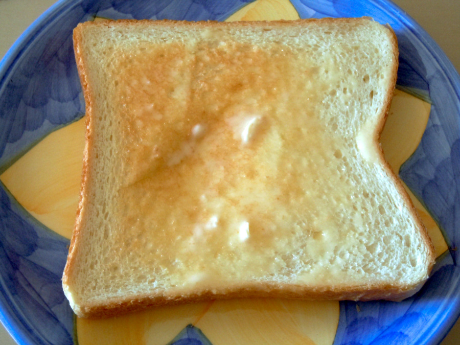 熱で溶けた感じが、喫茶店のモーニングのトーストっぽくてウマーです。