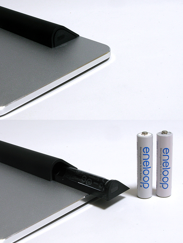 キーボードの脚の部分は、ガッチリした作りで滑り止めの役割と電池ボックスを兼ねています。