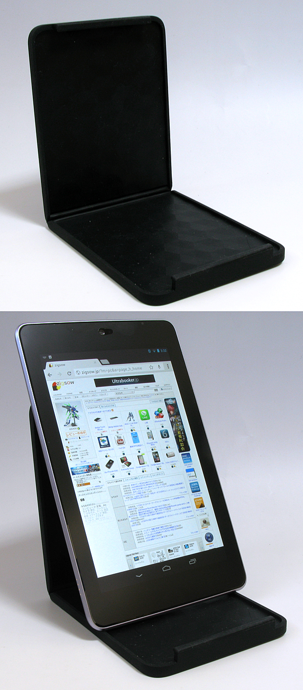 また、折りたたんでタブレットのスタンドとして使用できます。材質がゴムですのでタブレットが使用中にずれることはありません。