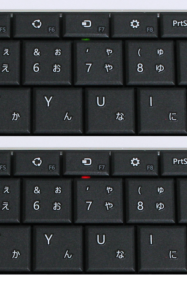 ペアリングモード時は、 F7キーの下のインジケーターが緑と赤の点滅になります。