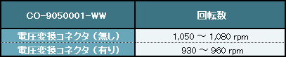 CO-9050001-WW付属の電圧変換コネクタ(有り)の場合は約1200rpm。回転数が高めのため動作は安定しています。回転数を落としてもCO-9050001-WWより一段高い状態のためファンノイズはやや気になるレベルですが、リアの排気用ファンですからユーザーから遠い位置になるのでPCケースに収めた状態ではとくに気になりません。