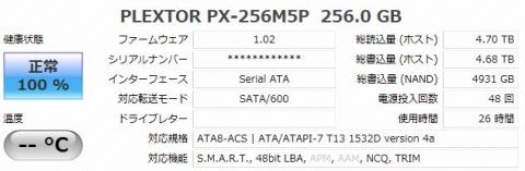 使用時間26時間なのに,総書き込み量4.68TBとは,ベンチ回しすぎ(?)です(リンクスさん).