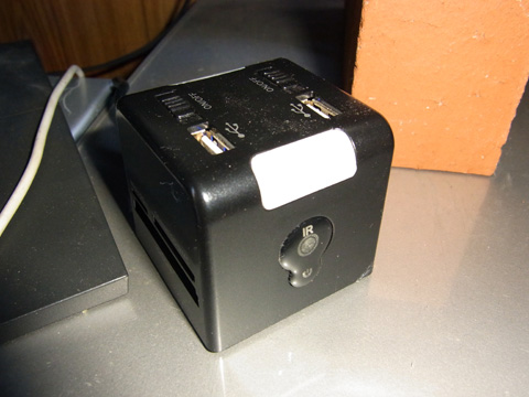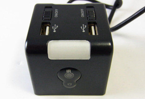 なんかもうとにかく多機能。キューブ状の立方体にこれでもかってくらいのメモリーカードリーダーを内蔵し、更にSIMカードリーダーに赤外線レシーバー(対応リモコン用)、そしてUSB2.0ハブが3ポート。最終的な分岐数で行ったらアイネックスの13ポートUSBハブに匹敵する勢いか。