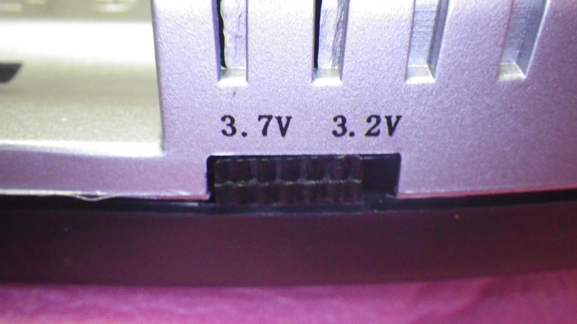 「電圧切替」スイッチがあり、電圧は3.7V/3.2Vが選択できる。