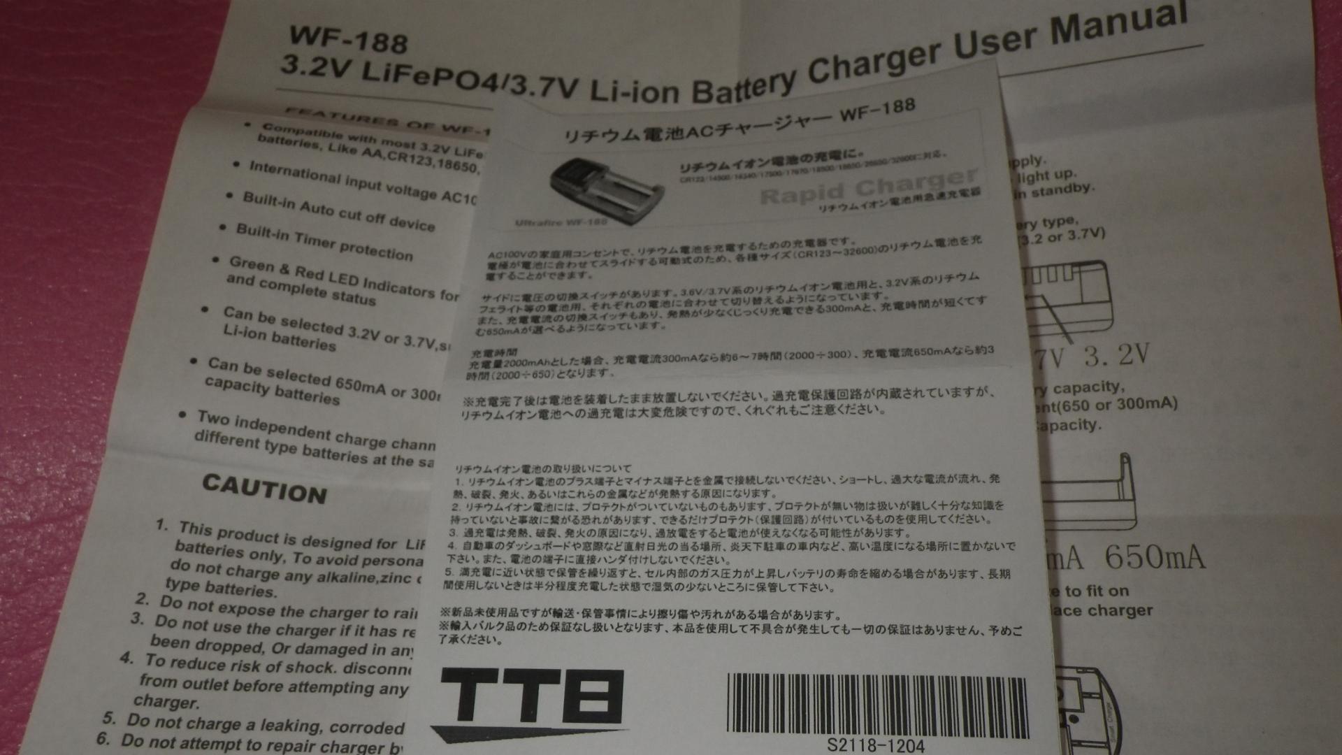 UltraFire 全タイプ対応充電器:WF188