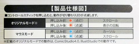 Sボタンにて、Tab-Mate Controllerに対応したソフト用の「オリジナルモード」とそれ以外の「マウスモード」に切り替わります。