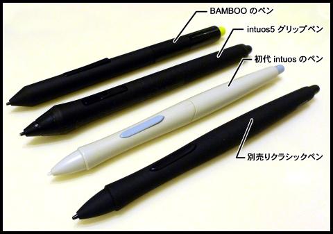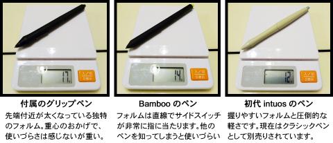 今、手元にあるタブレット用のペンを比較してみました。初代IntuosのペンとIntuos4クラシックペンは同じ重量となります。