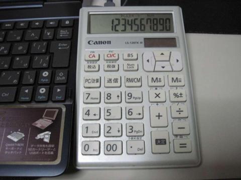 USB接続のテンキー電卓が使用できました。